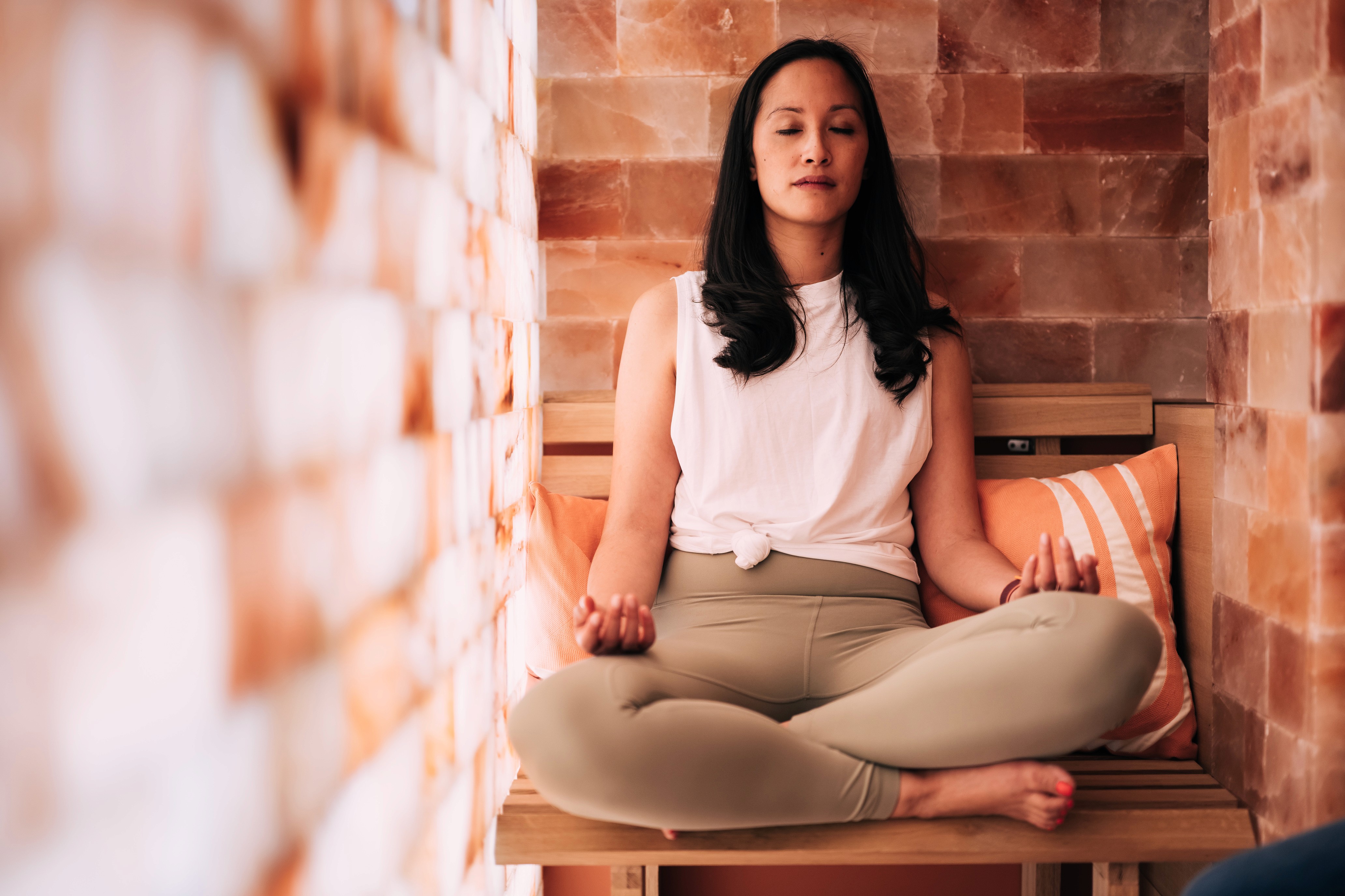 Nous proposons des séances de méditation guidée, de respiration, de relaxation profonde, ainsi que des expériences immersives comme la halothérapie (salle de sel) et des soins corporels.